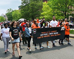 United in Peace ved, der er et rigtigt svar på skyderier, og de sluttede sig til andre organisationer og marcherede gennem Harlems gader for at pointere det punkt højt og tydeligt, mens de delte Vejen til lykke ud.